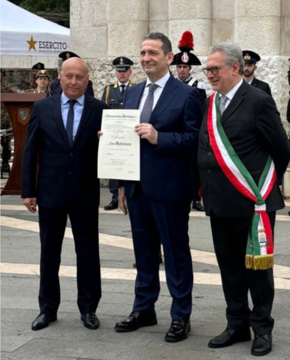 Per lui, che è a un passo dalla pensione, in occasione delle celebrazioni del 2 giugno che si sono tenute ieri a Caserta, ha ricevuto un’ulteriore riconoscimento. Accompagnato dal sindaco di Maddaloni Andrea De Filippo, gli è stato consegnato dal Prefetto di Caserta Giuseppe Castaldo il titolo di Ufficiale dell’ordine al merito della Repubblica Italiana.