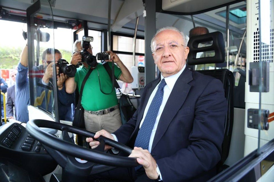 De Luca alla guida dei nuovi bus acquistati dalla Regione Campania