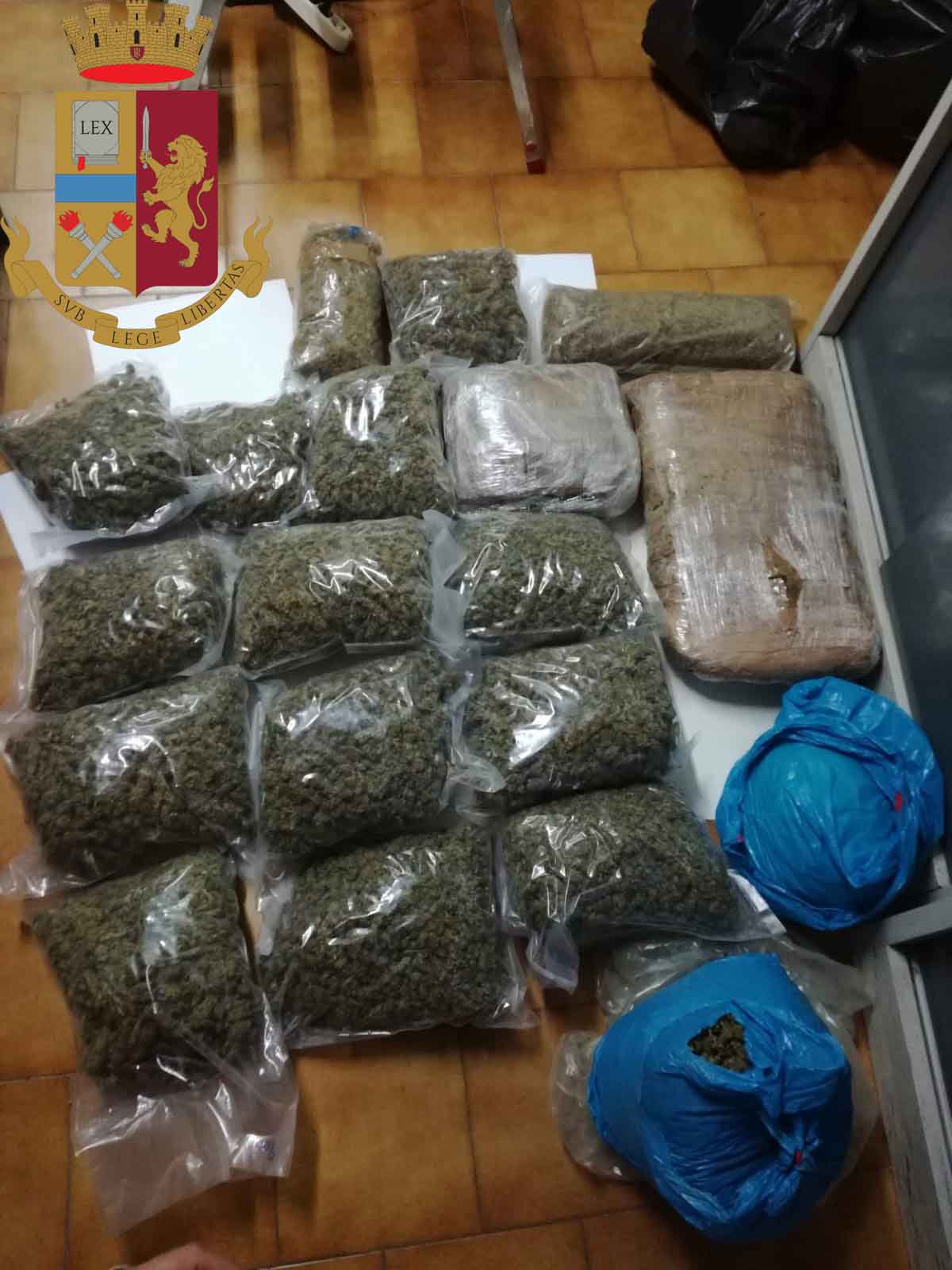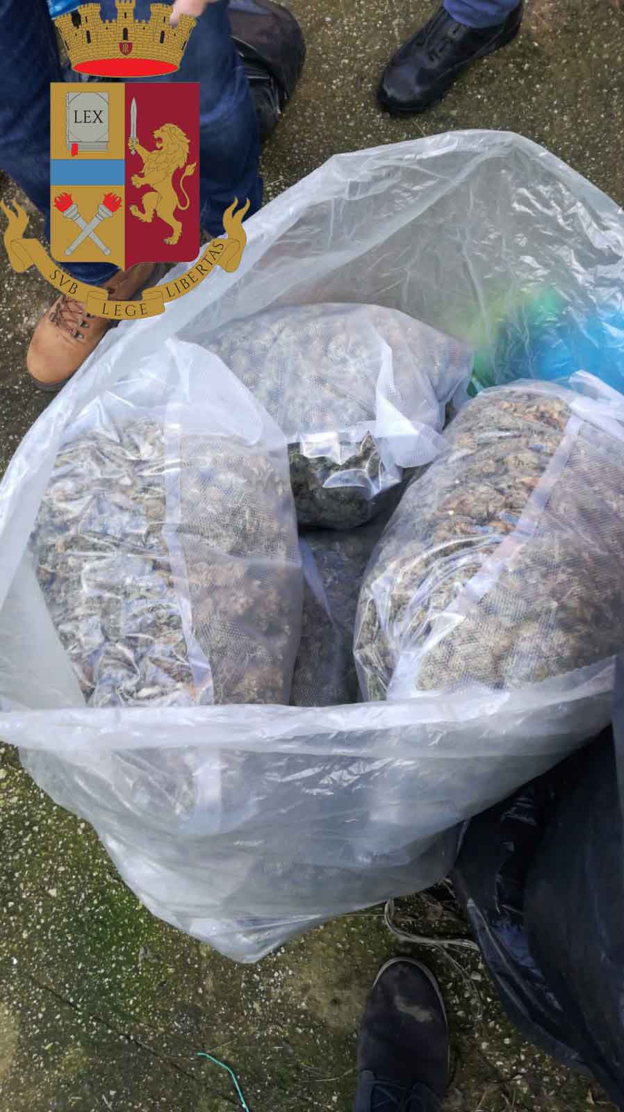Qui, in un casolare sito su di un appezzamento di terreno di pertinenza dell’abitazione del D’Agostino, veniva rinvenuta, celata all’interno di una botola sotterranea, marijuana per un totale di chilogrammi 24,25 suddivisa in nr. 15 buste trasparenti, singolarmente sigillate, nr. 2 buste per l’immondizia di colore azzurro e nr.2 grossi involucri richiusi con carta e cellophane trasparente.