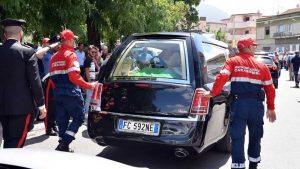 La bara avvolta nel Tricolore, seguita a piedi anche dalla moglie, entra portata a spalla dai Carabinieri nella piazza affollatissima che si ammutolisce e lascia sullo sfondo solo il suono delle campane. La piazza affollata e la piccola chiesa di Santa Maria del Pozzo a Somma Vesuviana dalle prime ore della mattina traboccava già di parenti, amici, semplici curiosi che non hanno voluto far mancare il loro affetto alla famiglia Ha presieduto la concelebrazione l’arcivescovo Santo Marcianò, Ordinario militare per l’Italia.