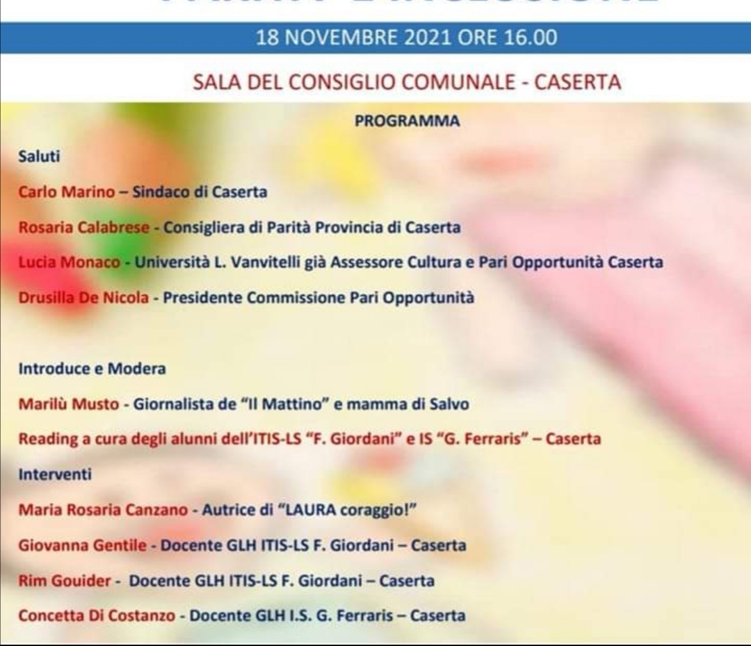 Caserta. Si terrà giovedì 18 novembre 2021, alle ore 16, presso la Sala del Consiglio Comunale del Comune di Caserta, l’iniziativa, proposta dalla Commissione per le Pari Opportunità del Comune di Caserta, dedicata all’autismo.