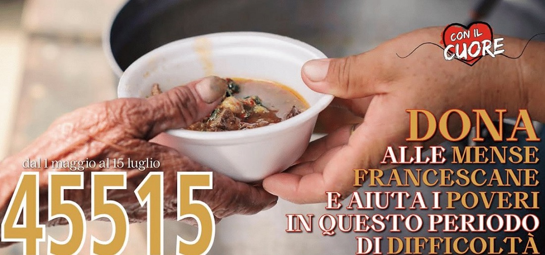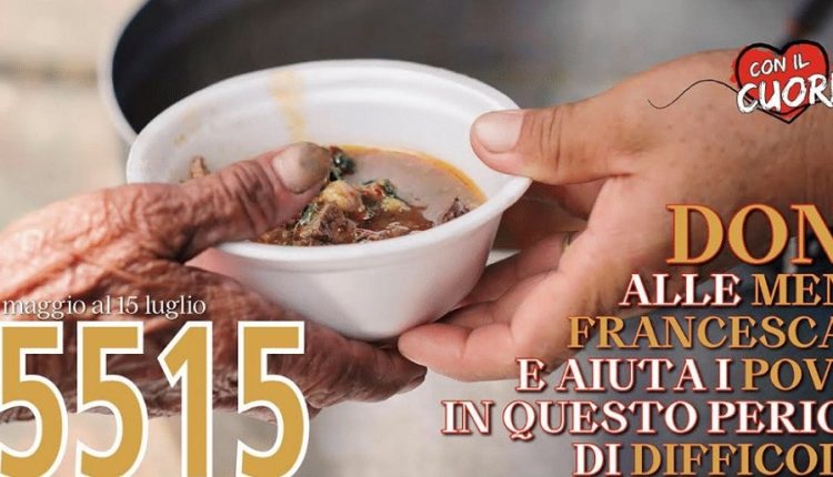“Con il cuore” nel nome di Francesco, per aiutare i fratelli più bisognosi. Inviamo un SMS al 45515 e doniamo 2 euro o più