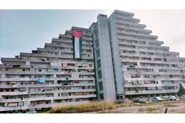 Una mega bandiera della Palestina è distesa sulla facciata di una delle vele di Scampia, a Napoli, per le vittime dell’ospedale bombardato nella striscia di Gaza. Intanto, notizia poco diffusa in questi giorni sui media nazionali, una lettera con 842 firme ha accusato la Commissione europea di dare “mano libera all’accelerazione e alla legittimità di un crimine di guerra” a Gaza. “Noi, un gruppo di funzionari della Commissione europea e di altre istituzioni dell’UE condanniamo con forza, per motivi personali, gli attacchi terroristici perpetrati da Hamas contro civili indifesi (…). Condanniamo altrettanto fermamente la reazione sproporzionata del governo israeliano contro i 2,3 milioni di civili palestinesi intrappolati nella Striscia di Gaza”, si legge nella lettera. “Proprio a causa di queste atrocità, siamo sorpresi dalla posizione assunta dalla Commissione europea – e anche da altre istituzioni dell’UE – nel promuovere quella che è stata descritta dalla stampa come cacofonia europea”, afferma la lettera. I funzionari europei esprimono preoccupazione per “l’apparente indifferenza dimostrata negli ultimi giorni dalla nostra istituzione nei confronti del massacro di civili in corso nella Striscia di Gaza, in spregio ai diritti umani e al diritto umanitario internazionale”. Il presidente del Consiglio europeo Charles Michel ha dichiarato il 17 ottobre che l’assedio di Gaza da parte di Israele, dove “non possono entrare né acqua né cibo, non rispetta il diritto internazionale………Vi esortiamo a chiedere, insieme ai leader di tutta l’Unione, il cessate il fuoco e la protezione della vita civile. Questo è il fulcro dell’esistenza dell’UE”, hanno ammonito i firmatari. E la recente posizione dell’Alto Commissario per la difesa Joseph Borrell si è contrapposta proprio a quella di pieno e incondizionato sostegno dell’Ue a Israele e Stati Uniti assunta da Ursula von der Leyen durante la sua missione a Washington.“Non si ottiene la pace per il futuro infliggendo ai bambini di Gaza sofferenze. Ogni diritto ha dei limiti e in un assedio non ci può essere un taglio dell’acqua e dell’elettricità, lo abbiamo detto più volte così come abbiamo condannato fermamente gli attacchi brutali di Hamas” ha sostenuto l’Alto Rappresentante europeo per gli affari esteri.
