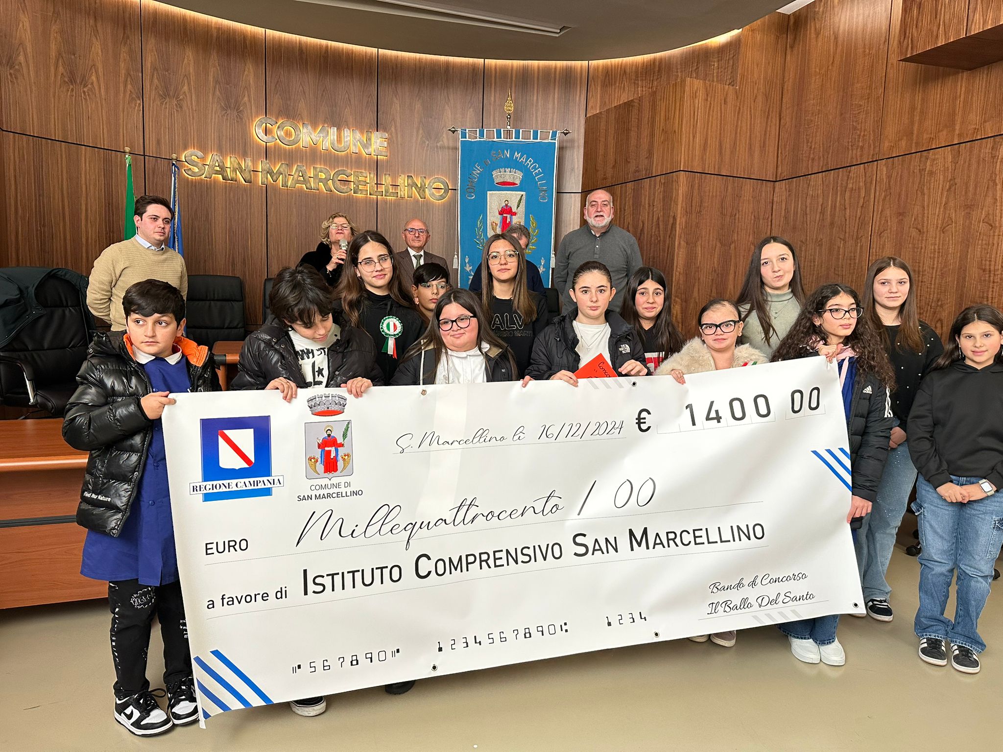 Nella mattinata di ieri, nella sala consiliare del Comune di San Marcellino, si è tenuta la cerimonia di premiazione del concorso “Il Ballo del Santo”. Alla presenza dei genitori, delle autorità locali e del clero, sono stati celebrati i giovani talenti delle scuole primaria e secondaria dell’Istituto Comprensivo di San Marcellino.