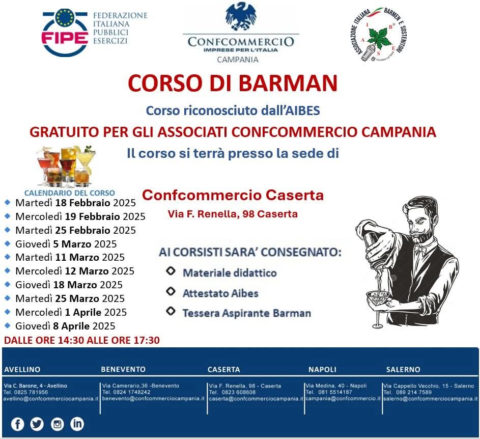 Confcommercio Caserta lancia il corso gratuito di Barman