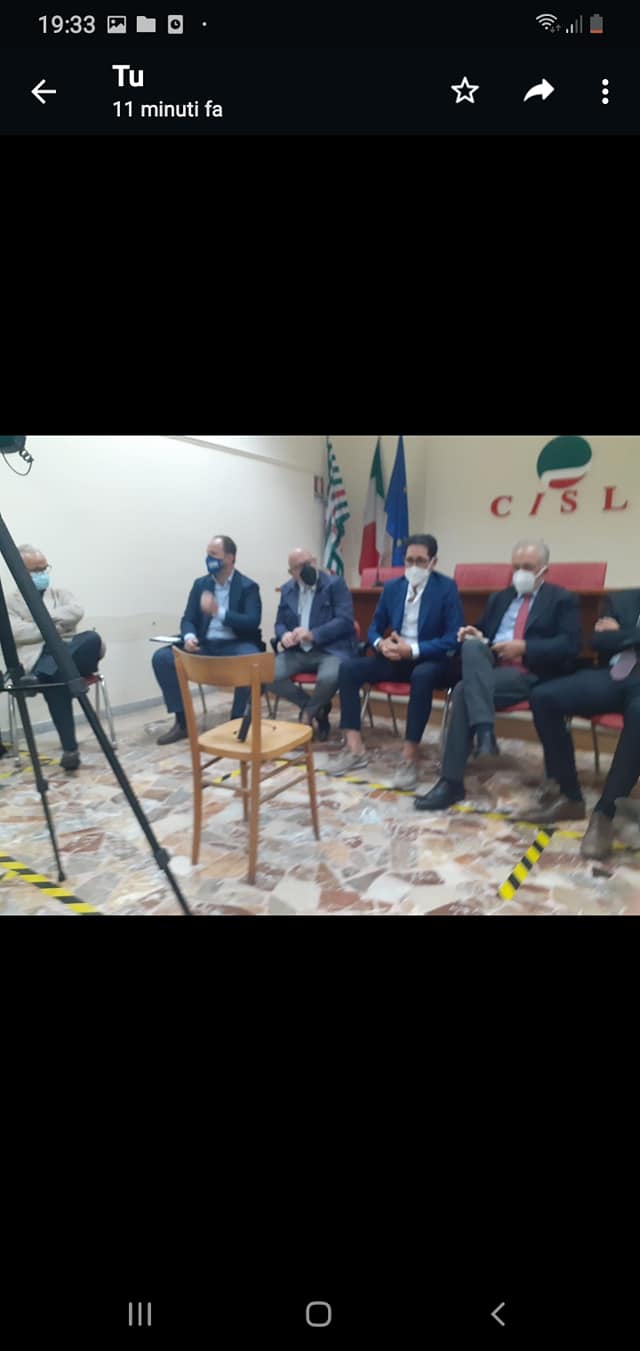 Infine Carlo Marino “La CISL è il luogo del lavoro bisogna vedere i nostri progetti tra 5 anni abbiamo i marciapiedi rotti abbiamo 32 milioni di euro in cassa stiamo cercando di ripianare i debiti, il biodigestore il policlinico bisogna guardare alla strategia, per quanto concerne la movida bisogna guardare alle forze dell’ordine, dobbiamo far investimenti per san leucio abbiamo ripristinato settembre al borgo dovrebbero arrivare 50 milioni per il policlinico stiamo cercando di fare 150 posti letto in ospedale con la pandemia è cambiato tutto ci vuole una polticiache difenda il territori non ho approvato il PUC perchè nel febbraio dello scorso anno è scoppiata la pandemia”.