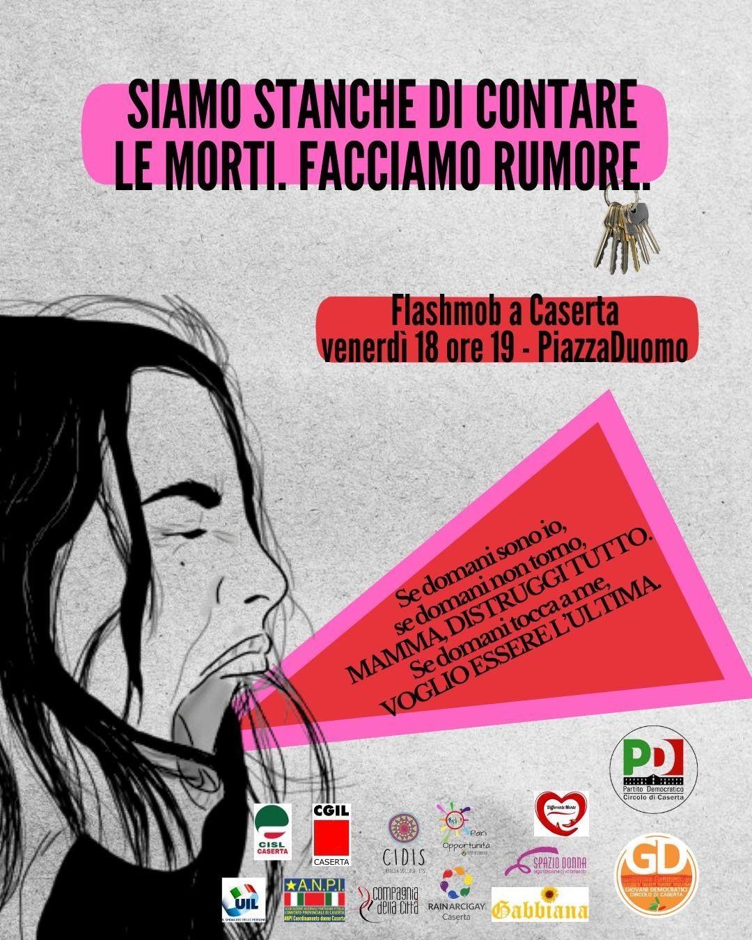 Non c’è più tempo per il silenzio. Ogni donna uccisa è un grido soffocato, un nome in meno, un futuro spento. È da questa consapevolezza che nasce il flashmob promosso da un ampio fronte di realtà associative, sindacali e politiche della provincia di Caserta. L’appuntamento è per venerdì 18 aprile, ore 19, in Piazza Duomo: un luogo sacro che diventa spazio profano di ribellione e consapevolezza.