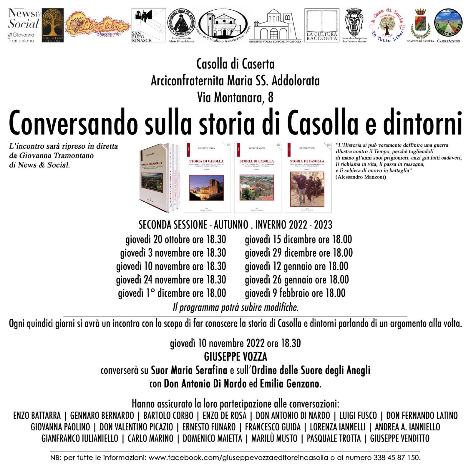 Caserta – Giovedì 10 novembre con inizio alle ore 18.30 nell’Arciconfraternita di Maria SS. Addolorata di Casolla vi sarà l’undicesimo appuntamento su “Conversando sulla storia di Casolla e dintorni”.