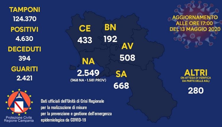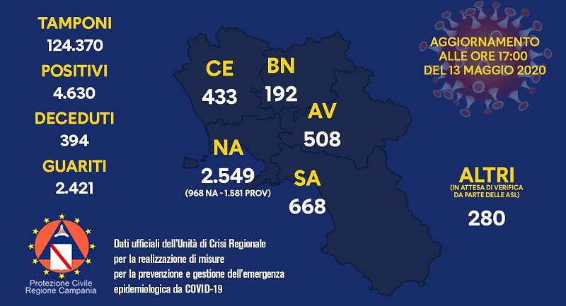 NAPOLI – L’Unità di Crisi della Regione Campania comunica che sono pervenuti i seguenti dati: