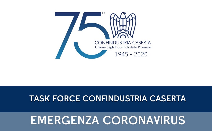 Confindustria Caserta, grazie alla task force per l’emergenza Coronavirus (per qualsiasi necessità è possibile scrivere ai seguenti indirizzi mail: FSolimene@confindustriacaserta.it – Ffevola@confindustriacaserta.it – Flombardi@confindustriacaserta.it – info@confindustriacaserta.it), continua a svolgere attività di informazione e assistenza alle aziende, recependo le istanze più urgenti.
