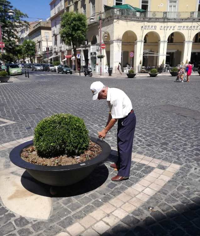 Invece i semplici cittadini a volte si sobbarcano delle incombenze pubbliche. È il caso di Giuseppe Sterle, amico di Casa Hirta, pensionato che tutte le mattine si cura le fioriere di piazza Dante, innaffiandole con spirito di abnegazione. Con la sua bici fa la spola per riempire una tannica alla fontana di via Vico…Questo mentre il Rotary pone una targa in cui afferma di prendersi cura delle aiuole …Una promessa marinaresca. Solo Peppe corre con la sua tannica……”.