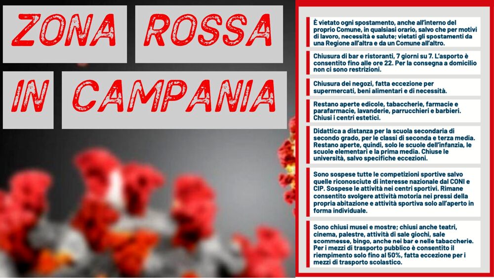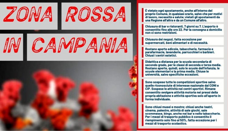 COVID 19, LA CAMPANIA TORNA ZONA ROSSA