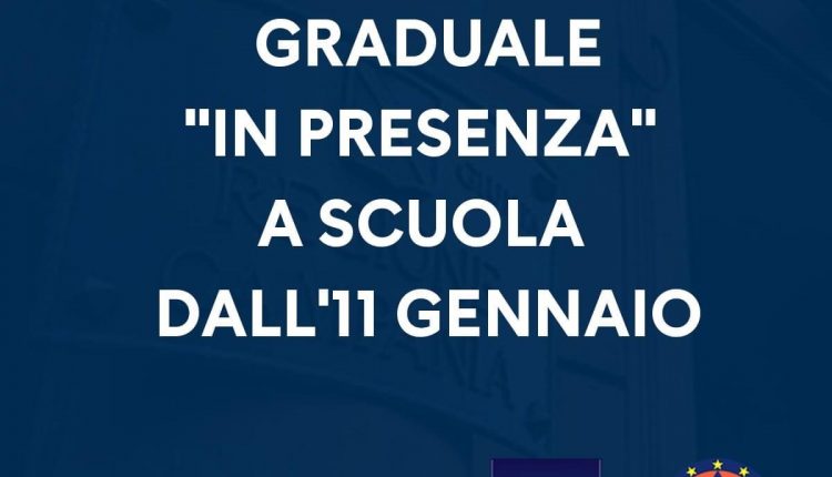 COVID-19, RITORNO GRADUALE “IN PRESENZA” A SCUOLA DALL’11 GENNAIO