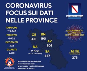Provincia di Napoli: 2.536, di cui 964 Napoli Città e 1572 Napoli provincia