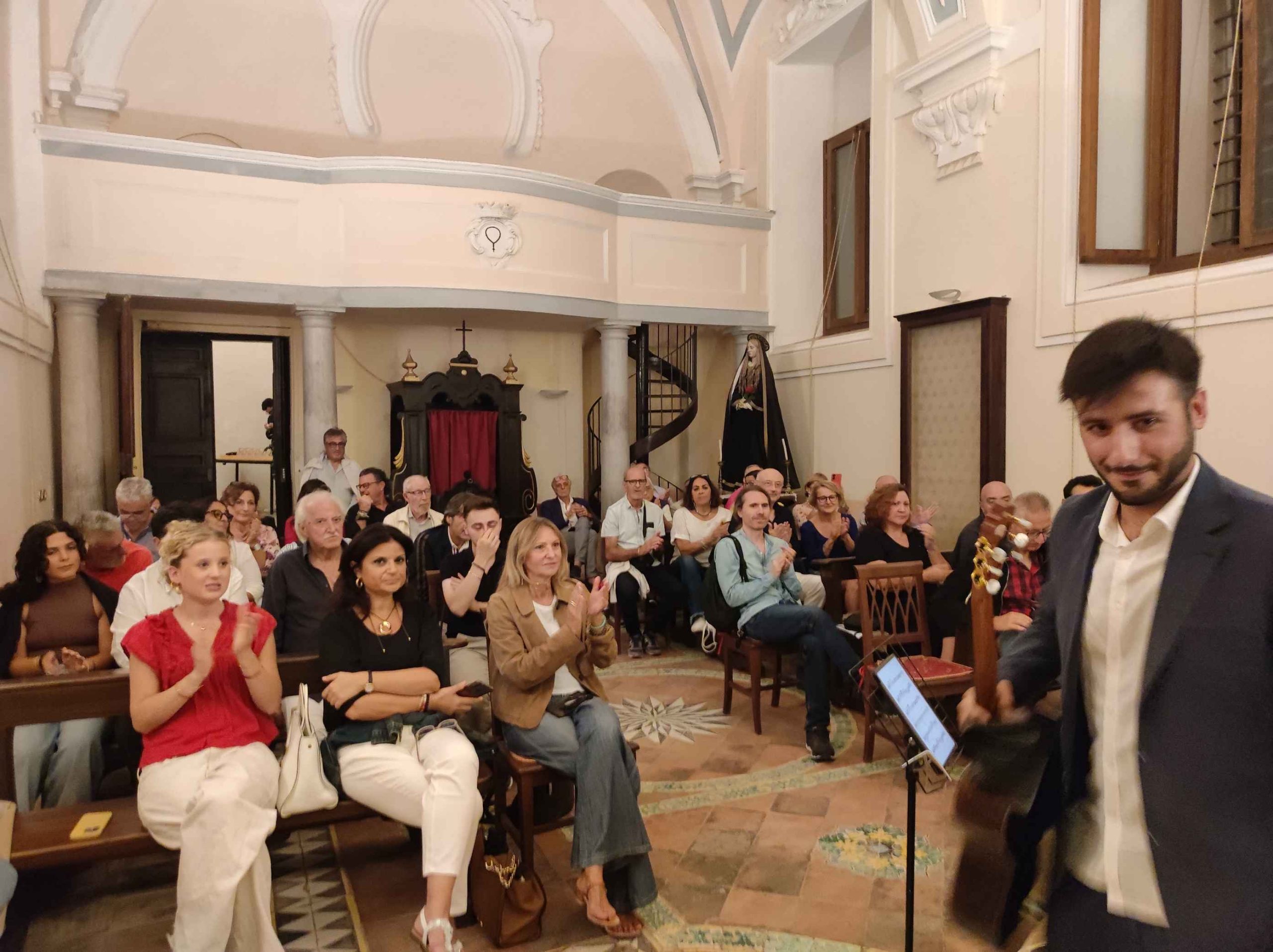 Serata musicale con il giovane maestro Cristian Tartaglia nella cappella del Santissimo Rosario del Convento di San Domenico in Sessa Aurunca. Tartaglia assorto e in perfetta sintonia nel generare le note del suo strumento musicale, ma spigliato e sorridente nelle conversazioni, come i ragazzi della sua età, ventisei anni. Già da tre anni insegna nella scuola secondaria di I grado a Milano. Tartaglia ha frequentato il liceo musicale “Agostino Nifo” di Sessa Aurunca e poi il conservatorio di Como, “Giuseppe Verdi”, ma la passione per la musica gli è nata un po’ per gioco nella scuola musicale secondaria di I grado di Mondragone. La serata musicale è stata presentata da Amedeo Virgulto dell’Associazione Mozart che con la Reale Arciconfraternita del Santissimo Rosario hanno promosso l’evento.