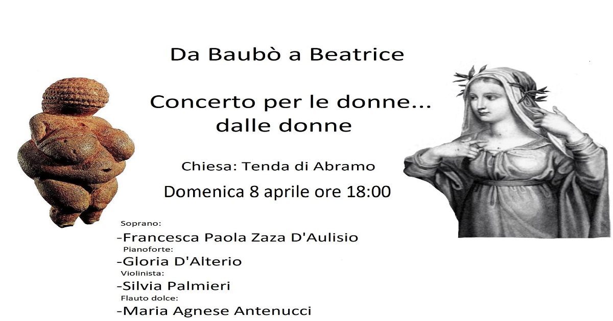 CASERTA – Oggi, domenica 8 aprile alle ore 18:00, presso la Tenda di Abramo di Caserta (in via Borsellino), avrà luogo il concerto “Da Baubò a Beatrice” incentrato sulla tematica: le idee che la creatività e l’intraprendenza femminile hanno diffuso nella storia dell’umanità.