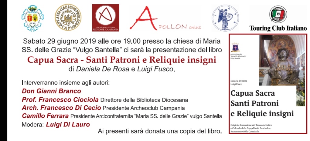Il libro sarà presentato sabato 29 giugno alle ore 19.00 nella chiesa di Santa Maria SS.ma delle Grazie, popolarmente detta Santella. A dialogare con gli autori ci saranno: don Gianni Branco, coordinatore delle parrocchie del centro di Capua, Francesco Ciociola, direttore della Biblioteca diocesana, Francesco Di Cecio, presidente dell’Archeoclub Campania, Camillo Ferrara, presidente dell’Arciconfraternita di Maria SS. ma delle Grazie. Luigi Di Lauro condurrà come moderatore l’interessante incontro.