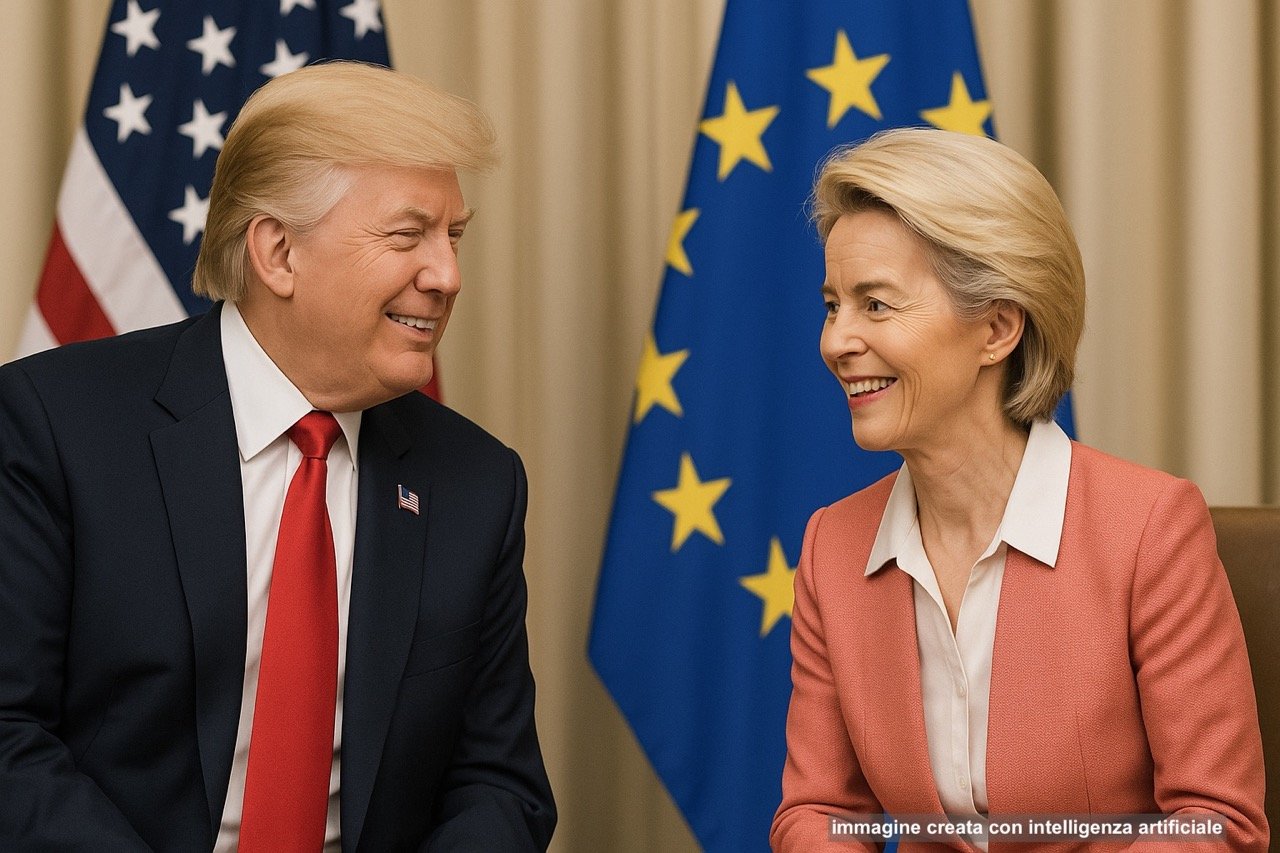 L’Europa, e con essa l’Italia, non si era mai inginocchiata così apertamente agli Stati Uniti. Eppure, ieri con l’incontro che la von der Leyen ha avuto con Trump, il vecchio continente lo ha fatto nel nome di un accordo che somiglia più a una resa. La Commissione Europea ha stretto intese che mettono a rischio l’economia europea, la sovranità e l’equità nei rapporti commerciali con gli Stati Uniti.