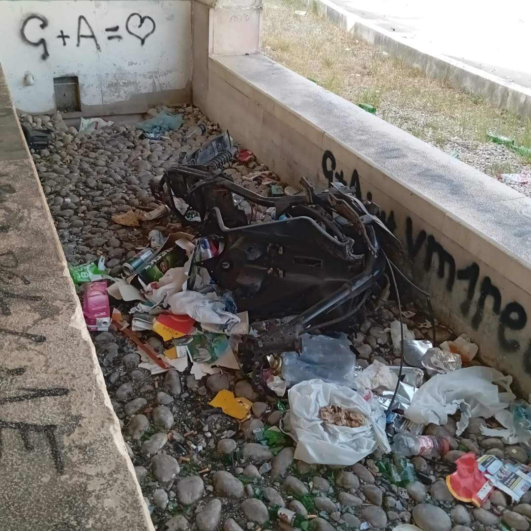 Il porticato e il terrazzo superiore, un tempo luoghi di rispetto e memoria, sono oggi scenario di vandalismi e incuria. Il verde trascurato e ingiallito, rifiuti e detriti deturpano il panorama, trasformando la fontana in una discarica a cielo aperto.