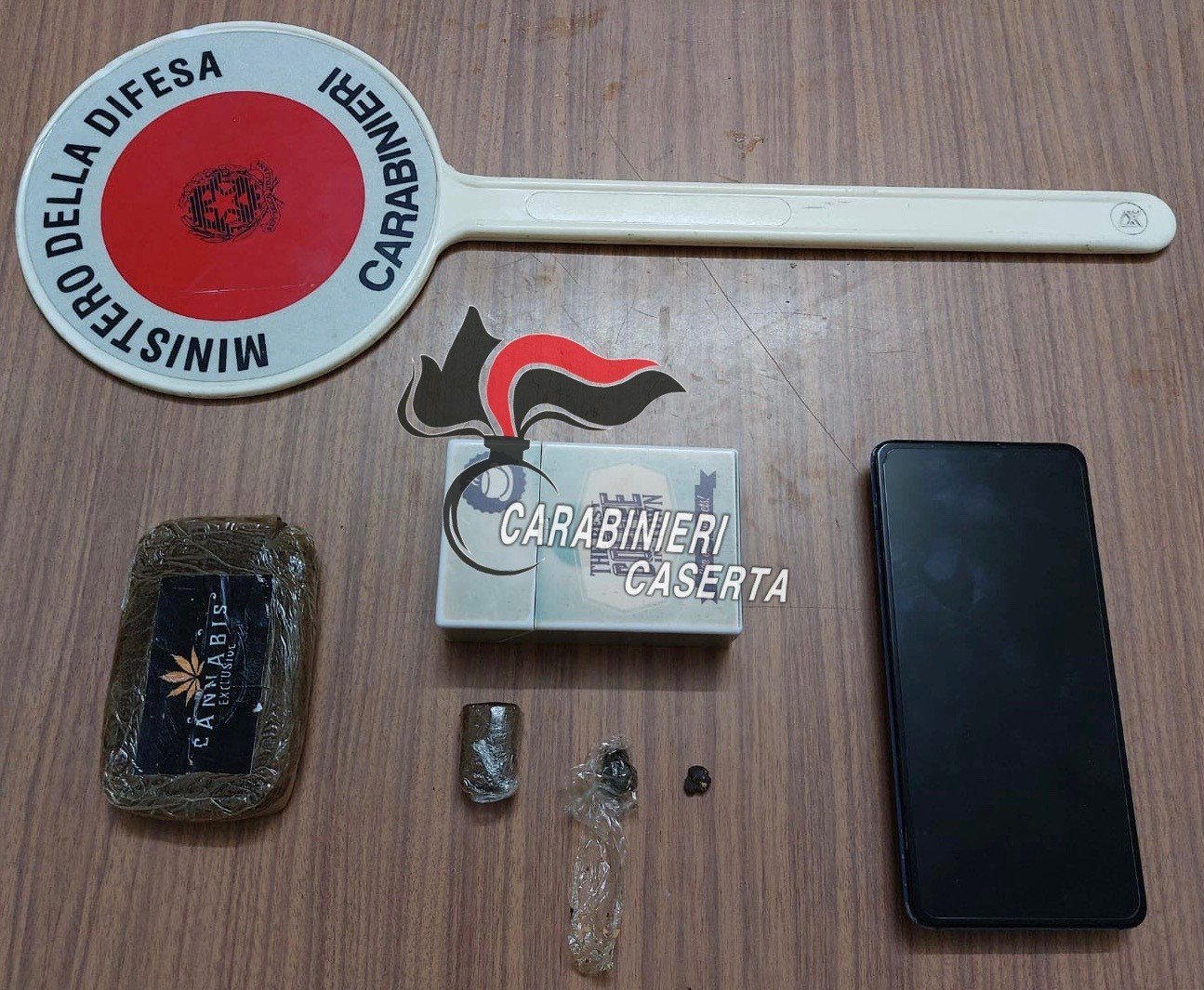 Parte dello stupefacente, in particolare tre dosi di hashish sono state trovate all’interno di un cofanetto porta sigarette custodito nel suo armadietto mentre un panetto di Hashish è stato trovato all’interno di una sua scarpa all’interno della scarpiera.