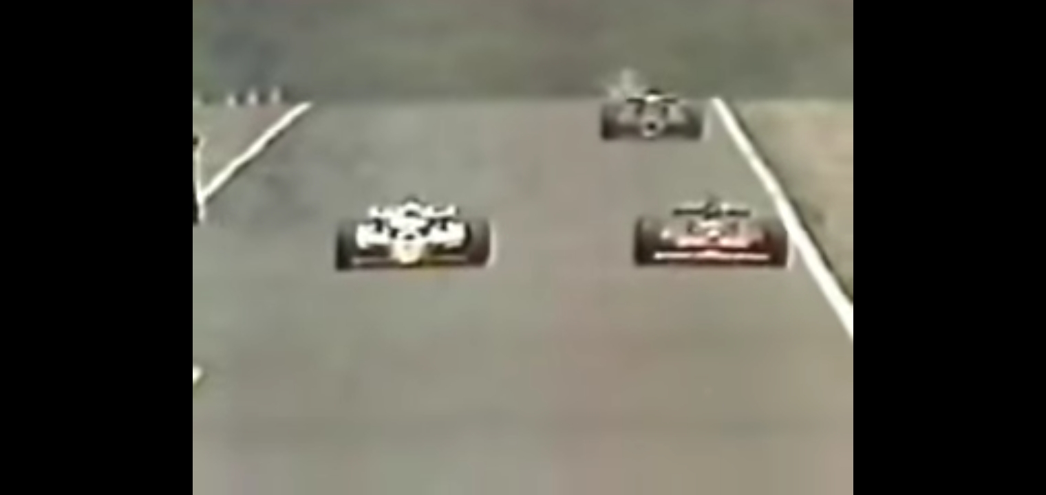 Scatta il semaforo verde il franco canadese sulla rossa n. 12 parte bene e brucia le monoposto bianco e gialle, con lo stemma a rombo davanti, partenza bruciante e tentativo di fuga per il pilota sul cavallino rampante.  La fuga riesce almeno fino a metà gara circa, la lepre Villeneuve viene raggiunta e superata da Jean Pierre Jabouille, che infatti supera il canadese col suo motore turbo che sprigiona i suoi cavalli, ora la lepre è lui, galoppata solitaria da solo in testa le posizioni rimangono congelate, Villeneuve conserva  la posizione n. 2, ma dietro di lui inizia a materializzarsi la sagoma dell’altra monoposto gialla di Arnoux in rimonta.