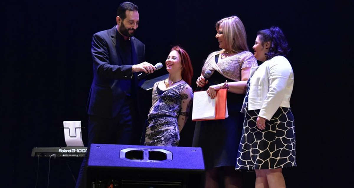 Le presentatrici sono state due ragazze down, Emmanuela Nuzzolese sfrontata e grintosa, l’altra, Giuseppina Parente più introversa e timida, ma non meno efficace sulla scena, che hanno affiancato la simpatica madrina dell’evento Teresa Esposito, una valletta con difficoltà di linguaggio ed elegante, Eva Mazzei, che improvvisamente diventa voce accorata, interpretando con il suo prof ‘Abbracciame‘, in un crescendo emozionale che scuote la platea, in uno dei più bei momenti della serata.