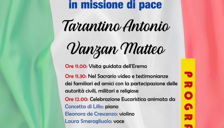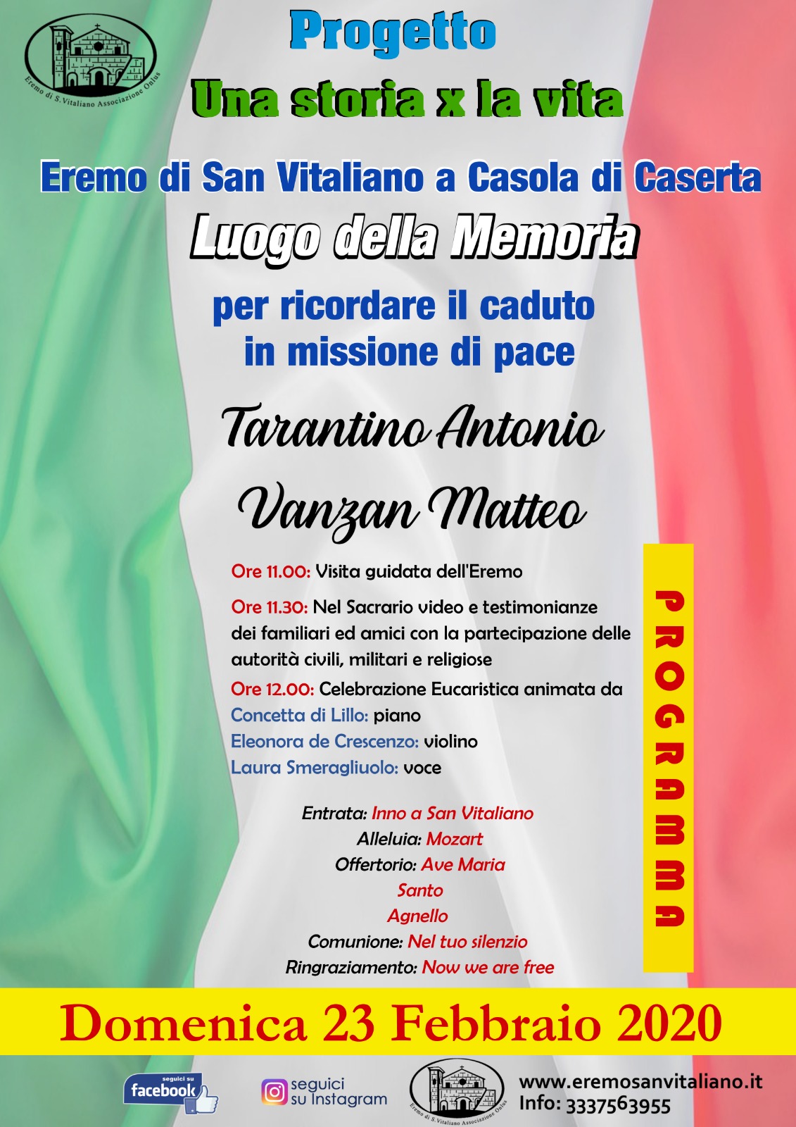 Domenica 23 febbraio presso l’Eremo di San Vitaliano in Casola di Caserta saranno ricordati due militari italiani: Matteo Vanzan e Antonio Tarantino.