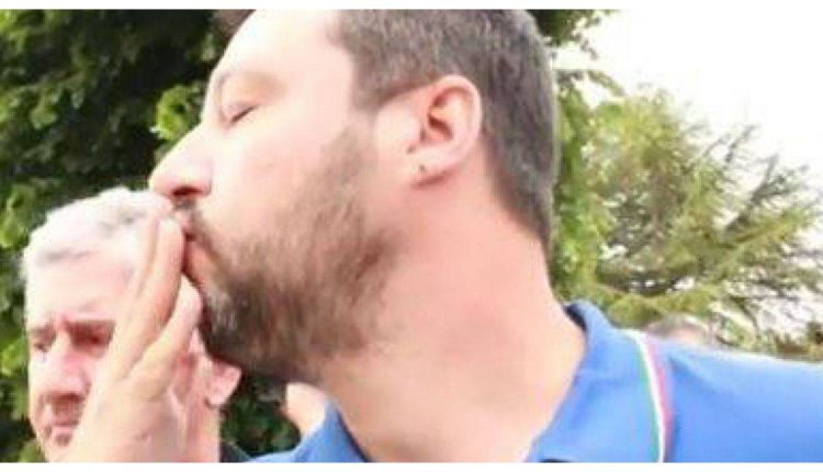 Il leader della Lega, dopo avere deposto i fiori, e’ salito in macchina e ha lanciato ironicamente un bacio alle donne che lo attaccavano dai balconi.