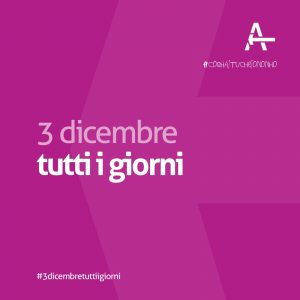 Dopo il successo dell’iniziativa social “Non si lascia indietro nessuno… mai!” dello scorso 3 dicembre in occasione della Giornata Internazionale delle persone con Disabilità, l’ODV DiversaMente lancia la campagna di sensibilizzazione “3 dicembre tutti i giorni”.