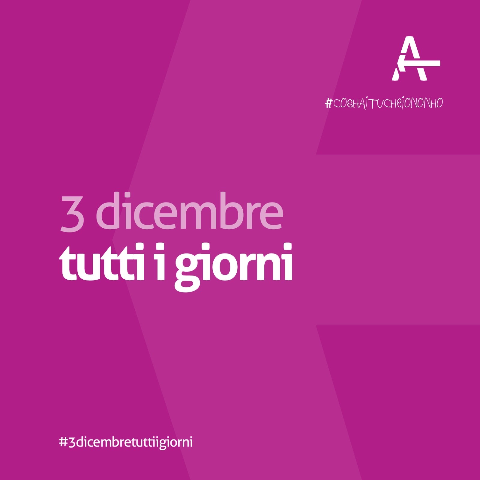 Ed è per questo che vogliamo sia Il 3 dicembre tutti i giorni, affinché nessuno sia più invisibile nella memoria della conoscenza. Nessuno più sia giudicato senza sapere. Nessuno sia incompreso. Nessuno sia diverso… da chi?”.