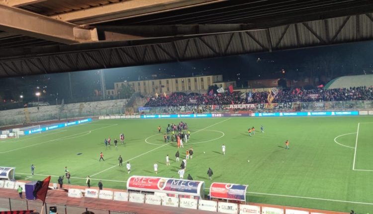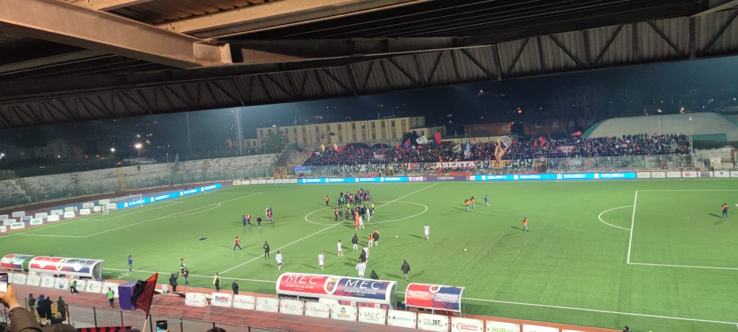 La Casertana dorme per tre quarti di partita, poi la ribalta nel finale: agguantato il quinto posto in classifica. Cosenza quarto a -3 e Salernitana terza a -4 possono essere ragionevoli obiettivi dei falchetti in vista dei playoff, che, ricordiamo, scatteranno ad inizio maggio. La partita non è stata poi tanto bella e le due squadre si sono equivalse a centrocampo, trovando i guizzi decisivi solo negli ultimi minuti. Speculari i due schieramenti di Coppitelli e Colombo: due 3-5-2 che hanno badato più a non prenderle che a darle. Nel primo tempo molte le conclusioni, ma poche realmente pericolose. Al 3’ cross velenoso di Valenti dalla destra con la palla che oltrepassa tutta l’area e si spegne sulla fascia opposta. Al 4’ buona giocata di Llano sulla sinistra, ma all’argentino non riesce la triangolazione con Casarotto. Tra il 16’ ed il 18’ ancora protagonista Llano, che, però, non riesce a calciare come vorrebbe in entrambi i casi. Al 22’ Butic prova un filtrante tra le maglie bianche del Monopoli, ma Oyewale fa buona guardia e Piana para in uscita. Grande chance dei pugliesi al 27’, con Greco che mette al centro per la testata ravvicinata di Fall: bravo De Lucia ad essere reattivo e a parare in due tempi. Ancora Monopoli al 40’, con un’azione personale dell’ottimo Valenti, che, tuttavia è ben contrastato da Kontek e Llano: nulla di fatto. Sugli sviluppi di un angolo testa di Butic alta (42’). Nella ripresa partita spezzettata e priva di vere occasioni, almeno nella prima parte. Al 52’ gran giocata di Oukhadda, ma il suo conseguente cross è lungo per tutti. Al 73’, in uno dei rari contropiedi della gara, Manzi offre una gran palla a Longo, fermato in extremis da Heinz. Poco dopo, un tiro di Valenti è respinto da De Lucia, la palla va a Fedel, il cui cross è toccato palesemente con il braccio da Proia. Rigore e trasformazione di Longo: 0-1. A questo punto, la partita si vivacizza è non c’è più motivo di imporre tattiche che hanno contraddistinto la partita fino a questo momento. Coppitelli, infatti, inserisce Vano e passa al 3-4-3. Il pareggio dei falchetti è raggiunto all’ 83’, grazie ad una punizione-capolavoro di Butic che, deviata leggermente dalla barriera (forse anche da un tocco di Vano), si infila in rete per l’1-1. Tutto il “Pinto” ora inneggia ai suoi per concretizzare il colpaccio. Colpaccio che arriva su un’altra palla inattiva: punizione di Pezzella, Piana non blocca e ne approfitta Butic, che insacca il 2 a 1. Ultimi disperati tentativi dei pugliesi per acciuffare almeno un giusto pari, ma il suggerimento di Angileri per Longo è in fuorigioco (93’). Cominciano, così, i festeggiamenti per i falchetti, che con questa vittoria potranno guardare con più fiducia e ottimismo al futuro. La strada per la promozione è lunga e difficile, ma con la giusta voglia di fare potrebbe rendersi più percorribile. Continuiamo a sostenere questi ragazzi, che con la giusta grinta e determinazione potranno essere autori di qualcosa di bello ed inaspettato.