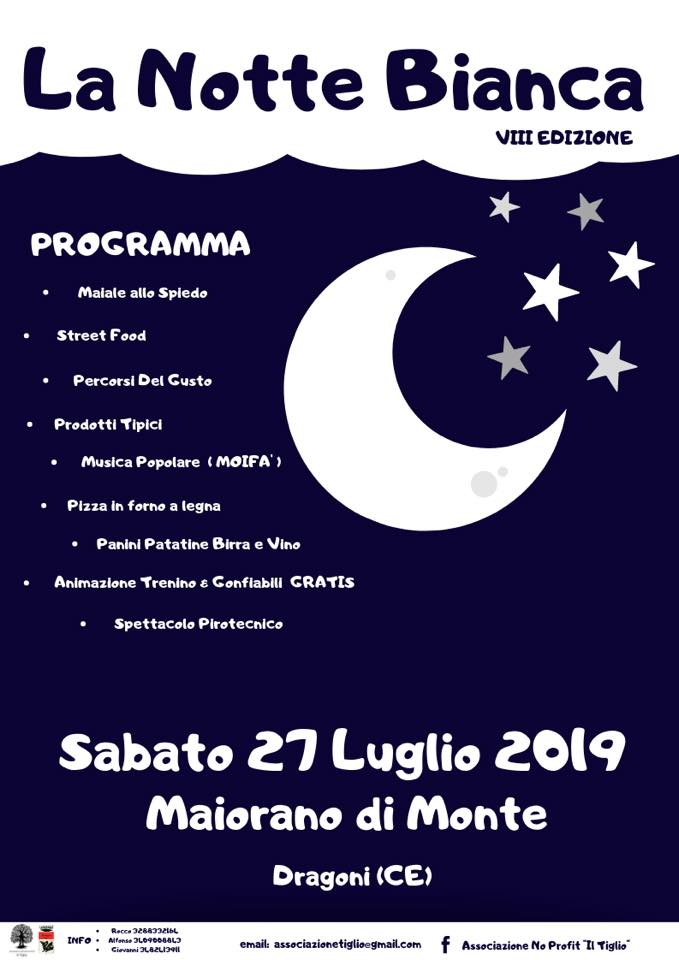 Fervono i preparativi per la Notte bianca dei sapori e delle tradizioni che si terrà sabato prossimo, 27 luglio, a Maiorano di Monte, la caratteristica frazione di montagna dove per l’ottavo anno consecutivo l’associazione no profit “Il Tiglio” e l’amministrazione comunale hanno voluto promuovere la manifestazione che terrà tutti svegli, allegri e pronti al divertimenti fino all’alba.