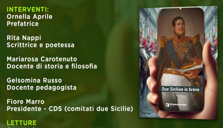Prosegue il suo iter di presentazioni il libro di Nunzia Sannino “Due Sicilie in breve”, Giammarino editore; scenario dell’evento questa volta sarà la meravigliosa città di Portici, presso Villa Fernandez, in Via Armando Diaz, 144, venerdì 7 giugno 2024, ore 18:00.
