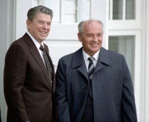 Gorbaciov nasce il 2 marzo 1931 da una famiglia di agricoltori. Dopo aver militato all’interno della “gioventù comunista” arriva a Mosca e si laurea in giurisprudenza nel 1955. Durante gli studi si iscrive al partito comunista e conosce la futura moglie Raissa Titarenko. Inizia a far politica a partire dagli anni ‘70, viaggia molto e nel 1984 incontra Margaret Thatcher, ha quindi modo di familiarizzare con un mondo diverso da quello da lui conosciuto. L’11 marzo 1985 , a 54 anni, diventa segretario generale del Pcus e fin da subito stabilisce rapporti di amicizia con i capi degli Stati occidentali, nella convinzione che l’economia sovietica esercitasse sempre meno attrattiva rispetto a quelle occidentali e asiatiche. Per questa ragione, optò per una politica di distensione nei confronti degli USA al fine di ridurre le spese militari che frenavano fortemente lo sviluppo dell’economia russa. Reagan e Gorbaciov si incontrarono una prima volta a Ginevra nel 1985 e in questa occasione, Reagan chiese all’URSS di ritirarsi dall’Afganistan. Nel 1986 l’URSS, per mostrare le sue reali intenzioni di distensione della tensione fra i due blocchi, concordò con la Casa Bianca un piano di riduzione delle armi nucleari da attuare entro il 2000. Tale piano metteva in discussione uno dei presupposti della guerra fredda e cioè il fatto che il possesso delle armi nucleari potesse servire come deterrente contro il nemico.