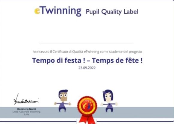 Il progetto europeo “È tempo di festa” -a cui l’IC ha partecipato- ha visto i discenti delle classi II e III A, coadiuvati dalla prof.ssa Maria Grazia Rapuano, impegnati in attività di comunicazioni in lingua francese con partner di madrelingua. Gli allievi si sono cimentati in alcune attività (presentazioni personali, scambi di auguri natalizi, produzione di maschere di Carnevale in carta riciclata), per poi confrontarsi sulle ricette dei piatti tipici. Attività diverse, ma tutte unite dallo scopo di creare un ponte virtuale Italia-Francia e proiettare così i giovani allievi in una dimensione europea.