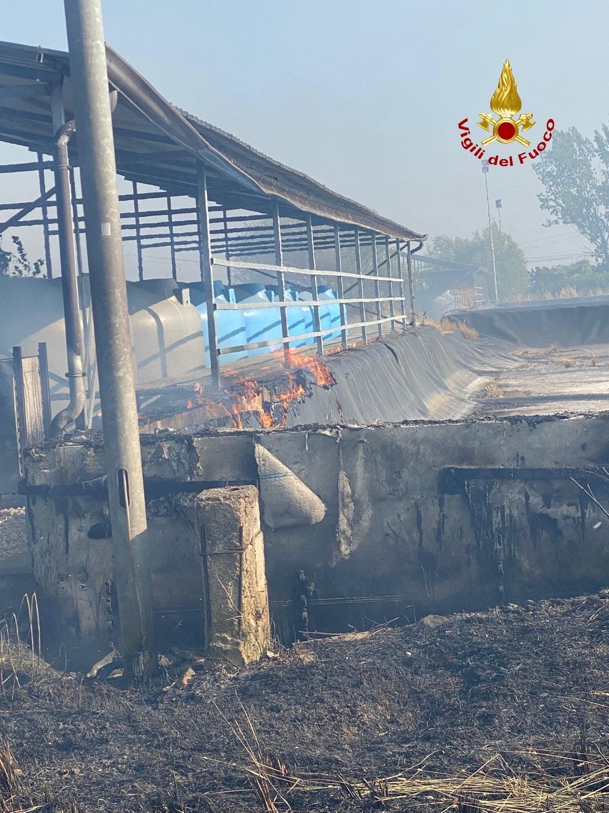 Santa Maria la Fossa- Ieri pomeriggio, verso le ore 15:00, la squadra dei Vigili del Fuoco del distaccamento di Aversa è intervenuta per un grosso incendio di sterpaglie che ha coinvolto anche uno dei vasconi di contenimento del percolato, utilizzati per stoccare le ecoballe di rifiuti durante l’emergenza di qualche anno fa. Ad andare a fuoco è stata la guaina impermeabilizzante che ha generato una coltre di fumo denso ben visibile da lontano. Sul posto è intervenuta anche un’autobotte per dare supporto nelle operazioni di spegnimento che sono durate circa quattro ore.