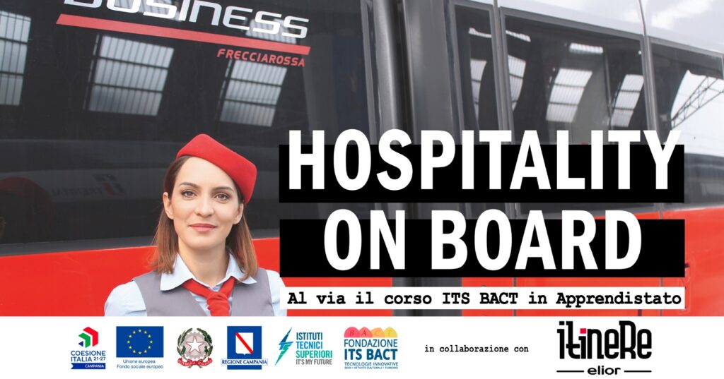 Alla fine del percorso, per quelli che conseguiranno il Titolo di Tecnico per la gestione di strutture turistico-ricettive con specializzazione in hospitality in movimento, il contratto di Apprendistato sarà trasformato in contratto di lavoro a tempo indeterminato. Sono previste sia lezioni in aula, presso la sede dell’ITS Academy BACT di Napoli, sia esperienze sul campo come apprendisti a bordo treno, nel sistema dell’ospitalità in movimento della Campania, o in altre strutture ricettive-ristorative del gruppo imprenditoriale Elior.