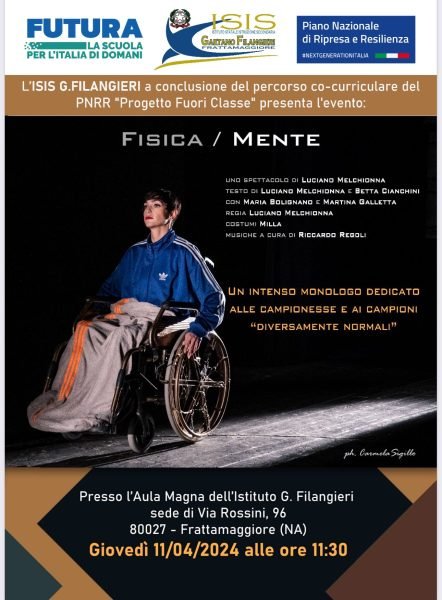 In mattinata presso l’ISIS G. Filangieri è stato rappresentato lo spettacolo “Fisica/mente” di Luciano Melchionna, rientrante nelle iniziative per l’orientamento finanziate dai fondi PNRR.