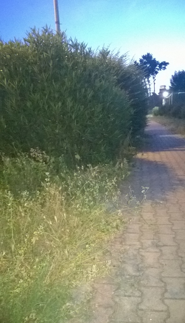 Purtroppo, come documentano ampiamente le foto allegate all’articolo, il verde lungo la restante parte della pista ciclopedonale ha raggiunto un’altezza eccessiva. Addirittura in una di questa possiamo vedere, o meglio non si vede, che dove abbiamo fotografo la segnaletica stradale non si vede assolutamente che c’è la pubblicità di un noto centro di pneumatici.