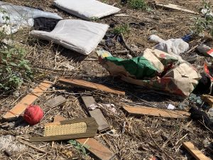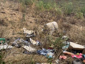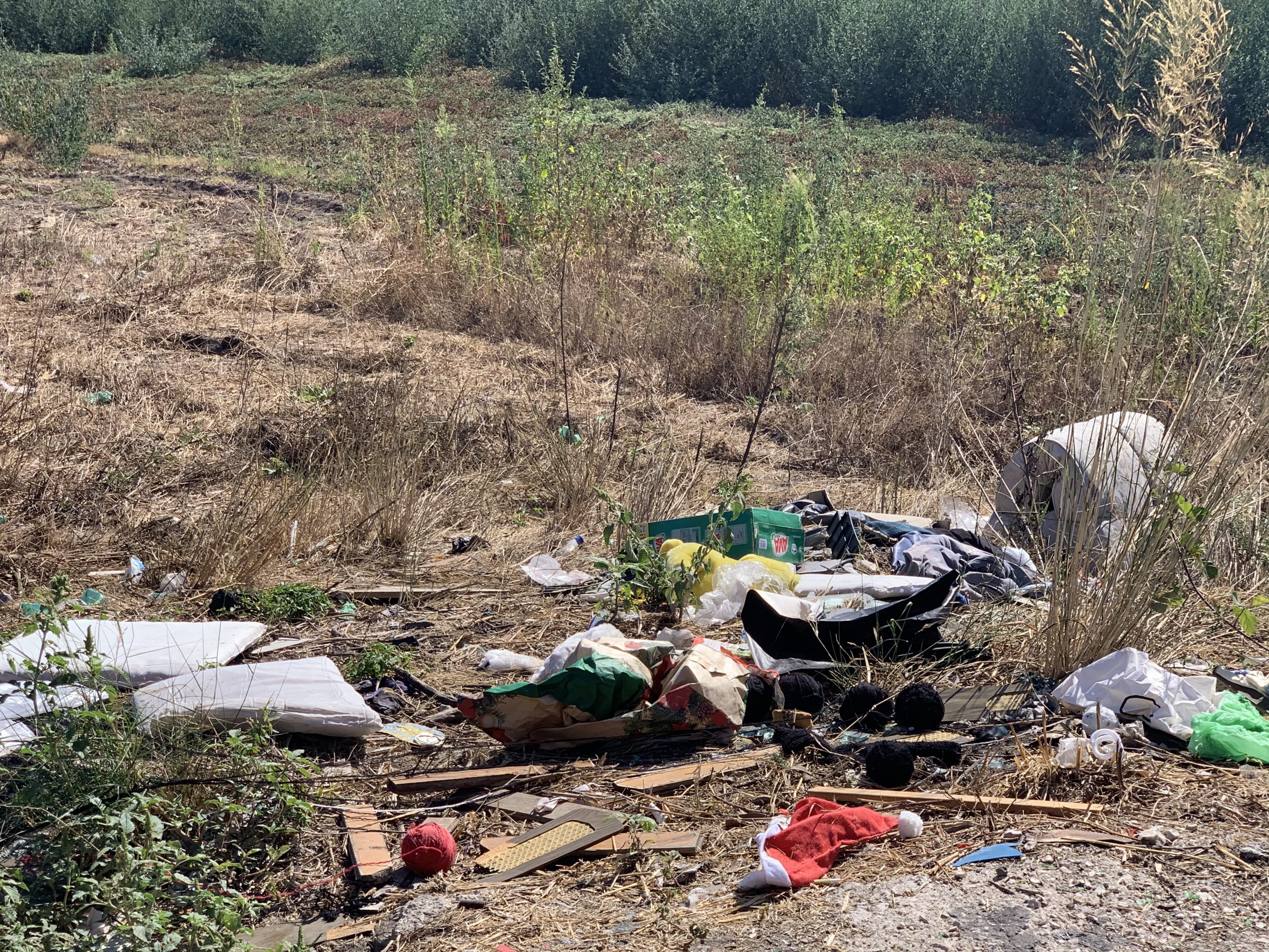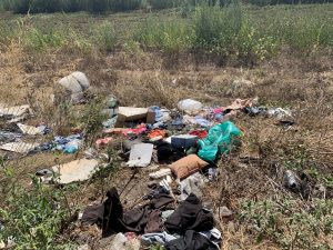 Le foto che seguono parlano chiaro. Rifiuti di ogni genere spuntano, non come fiori, tra l’erba alta. Erba che è stata tagliata grossolanamente, sempre a quanto ci riferiscono, ed è chiaramente ricresciuta e necessiterebbe di altra manutenzione. Terreni incolti, in attesa forse di avere una destinazione, sul lato di via Sauda, andrebbero recintati perchè sono ormai discariche ( vedasi sempre le foto con presenza di materassi e tanto altro).