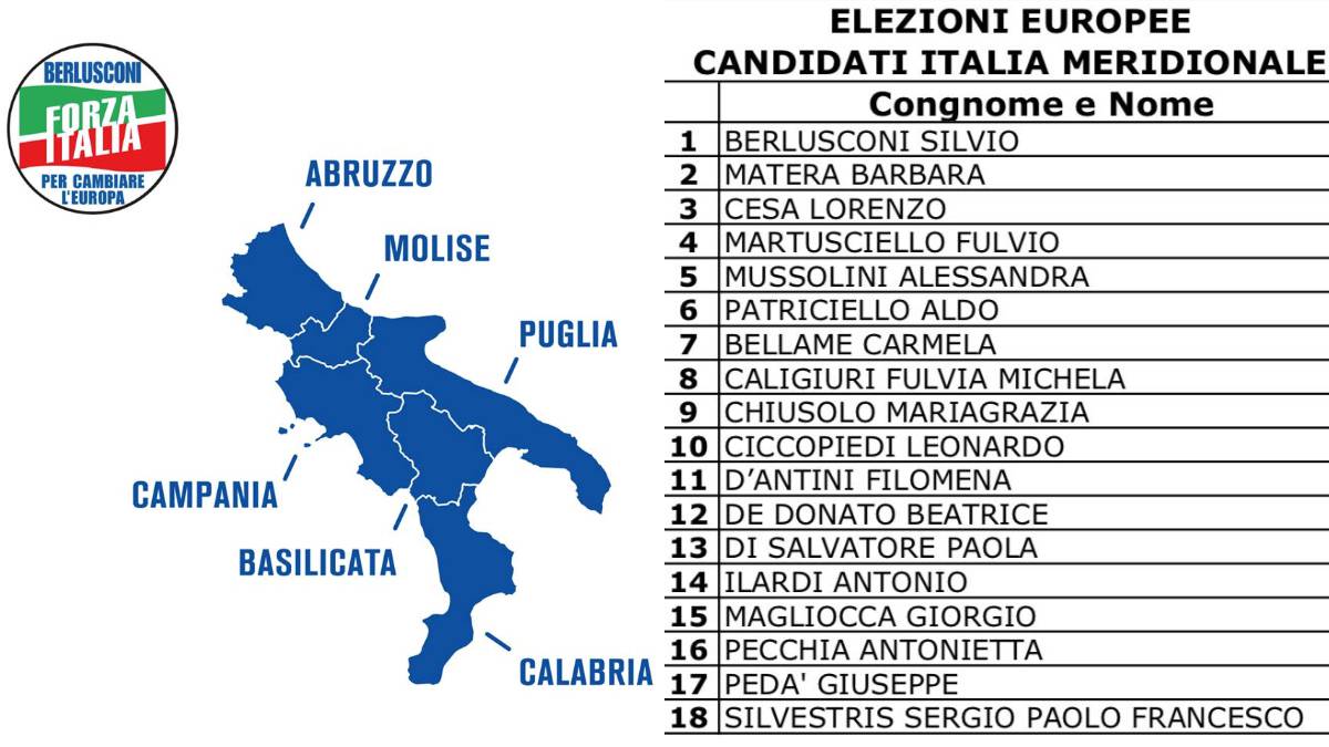 EUROPEE 2019, FORZA ITALIA CIRCOSCRIZIONE SUD | Liste pronte. Ecco i nomi