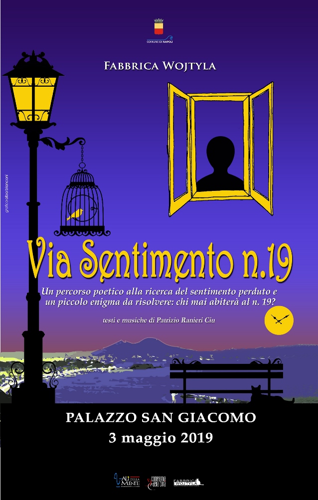 Fabbrica Wojtyla caratterizza e apre il “Maggio dei Monumenti” nella prestigiosa sede del Comune di Napoli, Palazzo San Giacomo, che si trasforma in teatro incontro con Via Sentimento n.19. Lo straordinario evento, omaggio assoluto alla città più bella del mondo, ha come illustre precedente lo storico film ‘Carosello Napoletano’ del 1954.