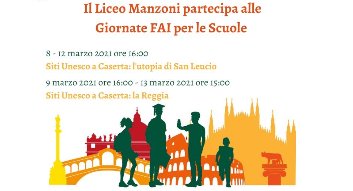 Date le restrizioni legate all’attuale situazione pandemica, “Apprendisti Ciceroni” cambia veste e si svolgerà – nella settimana dall’8 al 13 marzo – in edizione totalmente digitale, anche in ore pomeridiane, in modo tale da permettere di godere delle bellezze del nostro Paese anche a distanza. Quest’anno gli studenti manzoniani delle classi quinte – guidati dalla Prof.ssa Donatella Sandias, referente d’Istituto – saranno protagonisti di quattro visite guidate online, che saranno fruibili sui canali IGVT delle Delegazioni FAI, sul social wall del sito www.giornatefaiperlascuola.it e sulla pagina Instagram del Gruppo FAI Giovani di Caserta.