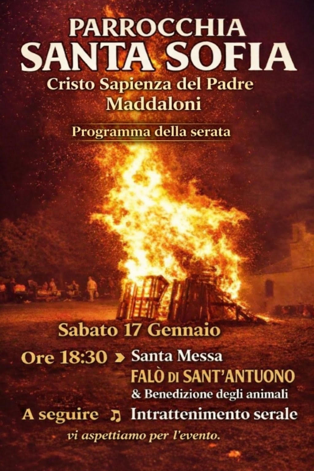 Nella parrocchia di Santa Sofia a via Cancello ore 18:30 si terrà la Santa Messa celebrata da don Antonio Traviso, cuore spirituale dell’evento, seguita dalla benedizione degli animali, gesto carico di affetto e rispetto verso i nostri compagni di vita. Subito dopo, si accenderà un grande falò, simbolo di purificazione e speranza.