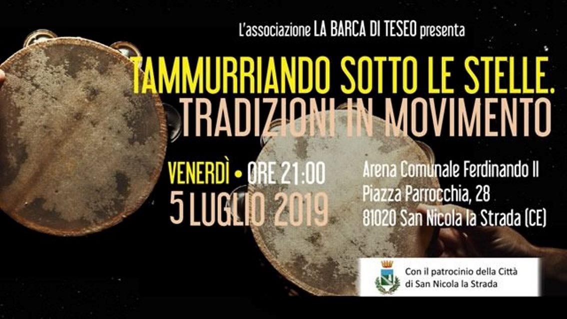 L’incedere ipnotico dei tamburi ancora una volta riecheggerà nella suggestiva e splendida location dell’Arena comunale “Ferdinando II” di San Nicola la Strada dove si rinnoverà, nella sua terza edizione, l’atteso evento INTITOLATO: “TAMMURRIANDO SOTTO LE STELLE Tradizioni in movimento”.