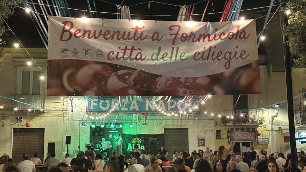 Formicola – Una tira l’altra… è la frase che richiama inconfutabilmente alle ciliegie, gustoso frutto di questo periodo, ricchezza e risorsa della città di Formicola in provincia di Caserta. Ogni anno, in questo periodo, nel paese dell’alto casertano, la Pro Loco “Il Capraio” celebra questo frutto dolce e gustoso con una festa a cui non si può non partecipare. La  Ciliegia Imperiale di Formicola che , pare, sia giunta in queste zone, secondo la tradizione, dalla nobile famiglia Carafa, viene coltivata  da oltre un secolo dai suoi abitanti. Un frutto delicato, che è possibile raccogliere soltanto manualmente, un lavoro che richiede grande fatica e impegno e che da qui parte e si diffonde in tutta Italia, ricercata per le sue caratteristiche e per la sua bontà, come ci ha raccontato il sindaco Michele Scirocco, con il quale abbiamo avuto l’onore di condividere il tavolo per gustare le leccornie preparate al momento dagli chef, naturalmente a base di ciliegie. Non solo dolci e marmellate, ma anche le chicche, piccoli gnocchetti conditi con ciliegie, preparate in due versioni, vegetariani e non, un primo piatto unico nel suo genere per delicatezza di sapori ed equilibrio degli abbinamenti. Un piatto più da grandi occasioni che da sagra, ma che è possibile assaggiare in occasione di questa festa in cui i piccoli frutti, in tutte le sfumature del rosso, adornano pietanze e luoghi del paese in festa Un legame identitario tra le ciliegie di Formicola e suoi abitanti, che negli anni hanno saputo valorizzarle conservando tradizioni che, attraverso questi giorni di festa, si diffondono sempre più, anno dopo anno, grazie al lavoro affiatato di questa comunità.
