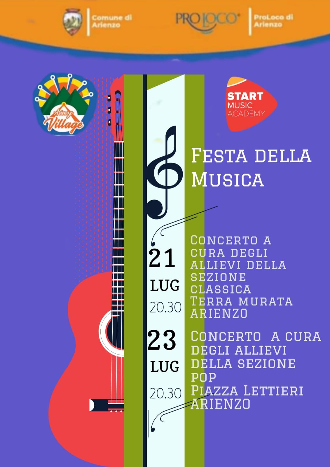 La festa della musica si chiuderà poi, con il concerto pop in Piazza Lettieri ad Arienzo sabato 23 luglio.