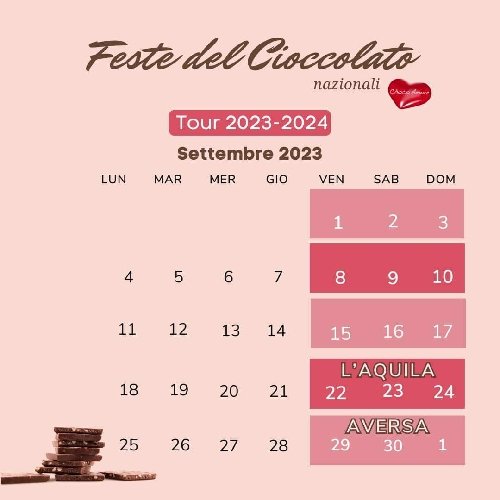 Feste del Cioccolato Nazionali: prossima tappa del Tour 2023-2024 la città di Aversa. Da domani, 29 settembre, al via la V edizione
