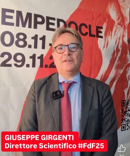 Molti gli ospiti intervenuti nel corso dell’edizione: studiose e studiosi come Chiara Agnello, Igor Agostini, Laura Barreca, Laura Anello, Salvatore Di Piazza, Patrizia Laspia, Loredana Cardullo, Paolo Colizzi, Silvano Tagliagambe, Franco Giudice e Valentina Porcheddu hanno offerto letture diverse del pensiero antico e del suo legame con le sfide del presente, intrecciando filosofia, arte, storia, comunicazione e antropologia culturale. La pluralità delle voci è stata uno dei tratti distintivi dell’edizione, che ha puntato sulla contaminazione disciplinare come strumento di comprensione della complessità. Un ruolo centrale nell’organizzazione e nell’impianto scientifico del Festival lo ha avuto Giuseppe Girgenti, direttore scientifico insieme a Flavia Frisone. Girgenti -noto studioso del pensiero antico e della tradizione platonica e professore di storia della filosofia antica l’Università Vita-Salute San Raffaele di Milano-ha contribuito a definire la cornice teorica degli incontri e ha guidato alcuni dei momenti più attesi. Nel giorno inaugurale, alla Biblioteca Lucchesiana, ha tenuto la lectio “La musa sicula: Empedocle, poeta, filosofo e mistico”, un intervento che ha intrecciato filologia, metafisica e spiritualità antica, mostrando la pluralità della figura empedoclea. Nei giorni successivi ha partecipato a ulteriori appuntamenti, tra cui l’incontro “Uno, centomila. Da Empedocle a Pirandello”, ospitato al Liceo classico “Empedocle”, dove ha tracciato un percorso originale tra il pensatore agrigentino e l’autore dei Quaderni di Serafino Gubbio, mettendo in dialogo mito, identità e metamorfosi dell’io. La sua presenza, discreta ma autorevole, ha fornito continuità intellettuale all’intera manifestazione, che si è conclusa con l’intervento di Angelo Tonelli, massimo esperto di Empedocle.