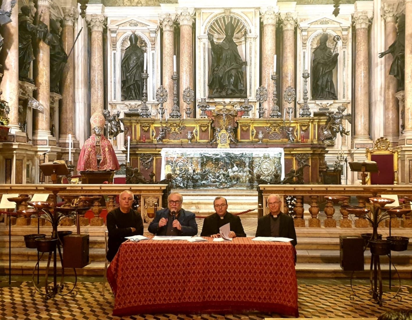 Alla conferenza stampa, che si è svolta nella Cappella del Tesoro di San Gennaro al Duomo di Napoli, sono intervenuti: Monsignor Vincenzo De Gregorio, l’ Abate della Cappella del Tesoro di San Gennaro, già Preside dell’Istituto Pontificio di Musica Sacra; Monsignor Vincenzo Doriano De Luca Decano del VII Decanato della Curia Arcivescovile di Napoli; Luigi Carbone, Presidente della Commissione Cultura del Comune di Napoli; il Maestro Carlo Faiello, musicista e musicologo; il Maestro Enzo Amato, direttore artistico del Festival.